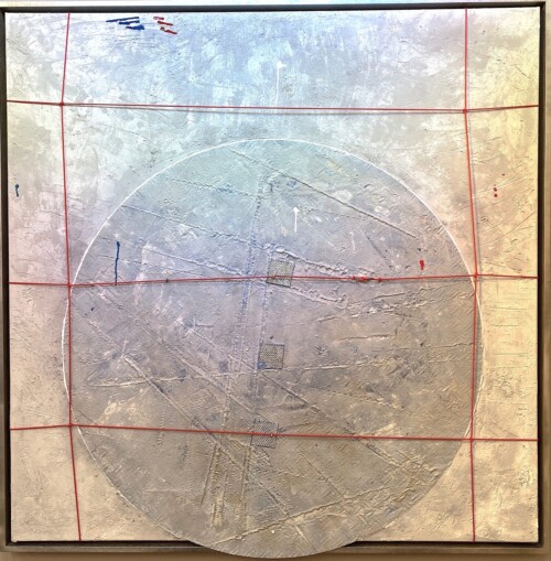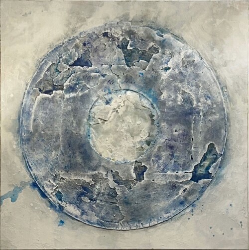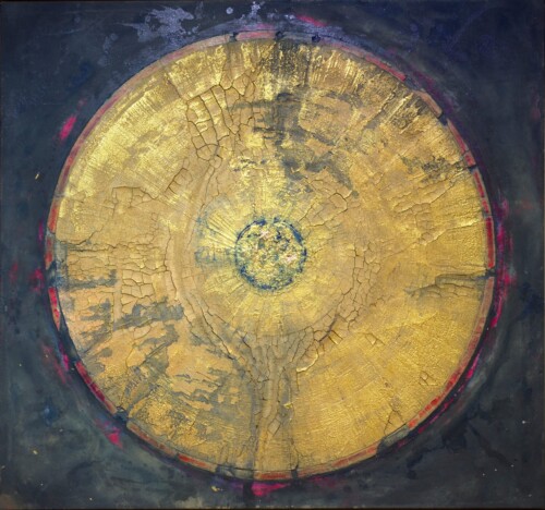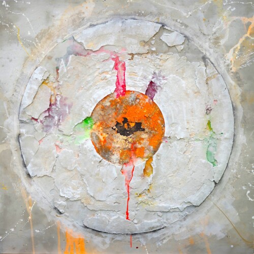 Dietrich’s 2013 encounter with Christo and the “Big Air Package” installation in Oberhausen inspired his “Wheels” series, where he explored the circle as a geometric form while employing traditional fresco techniques.