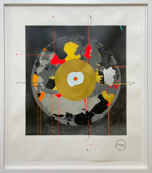 In his “Metamorphosen” series, Dietrich shatters previously exhibited paintings, symbolizing transformation and renewal. These works illustrate a journey from larval states to fulfilled purpose. In 2020, he initiated a charity project supporting women’s shelters, donating the original work “Metamorphose Orange 25” along with 99 hand-painted prints for the “Zonta says NO” campaign. The initiative, launched in collaboration with Galerie Kellermann, continued under the patronage of Herbert Reul, Minister of the Interior for North Rhine-Westphalia, raising significant funds in 2021 and 2022 to combat violence against women and girls.