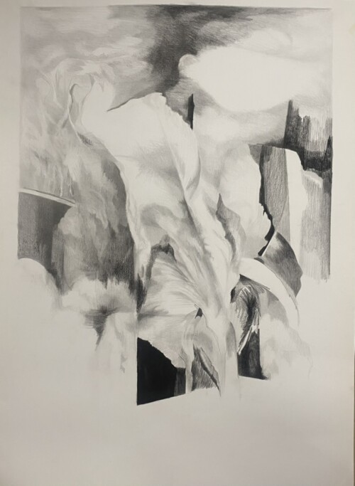 For many years, my work was more figurative. I focused extensively on the human figure and live models. I experimented with various techniques, and I currently