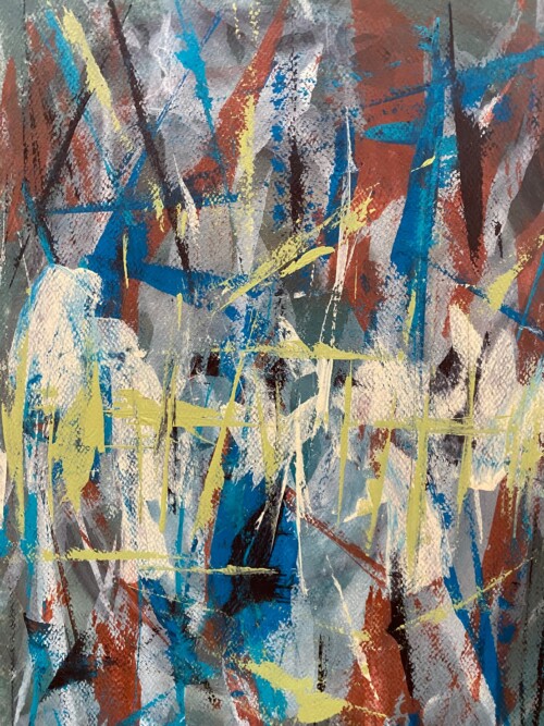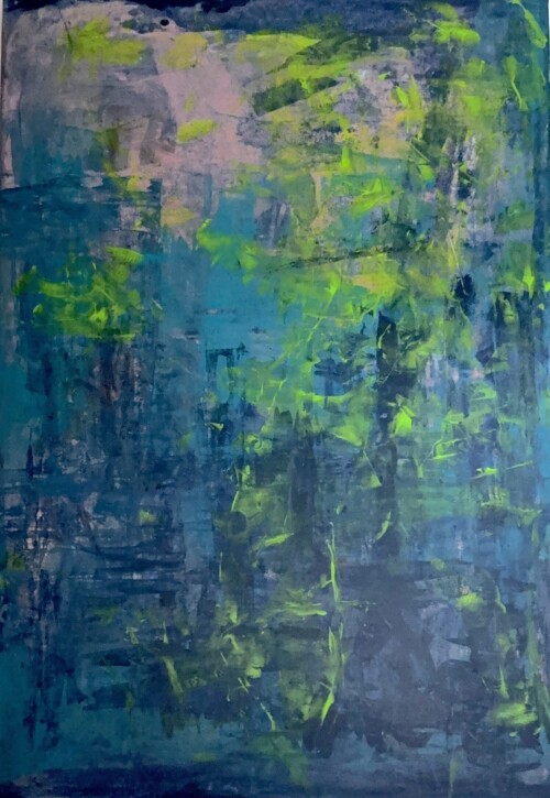 En el año 2023, radicada por cuestiones laborales en la ciudad de Punta del Este, sentí -sin explicación racional- que tenía que pintar. Así, de manera autodidacta, me sumergí en el mundo del arte abstracto.