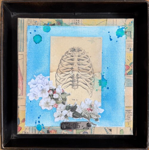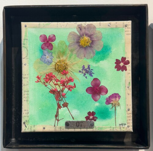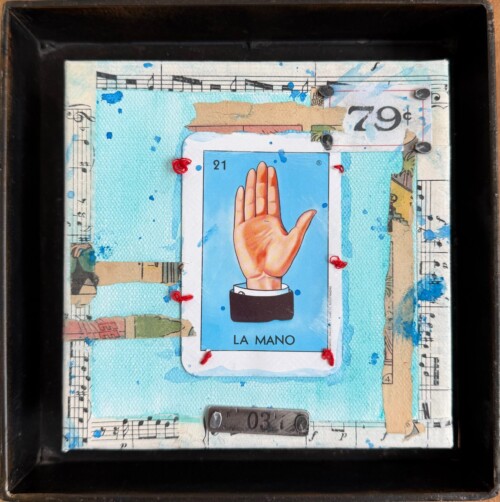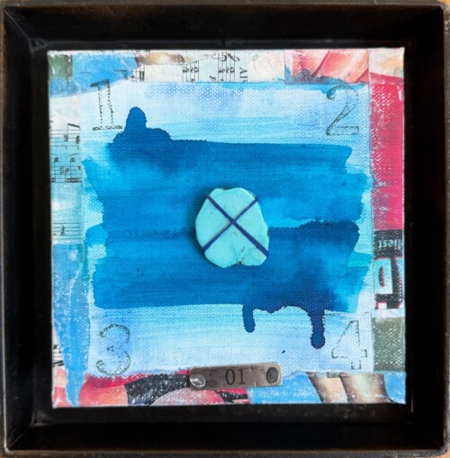 Mónica Fastag Ponsky (Mexico City, b. 1969) is a Mexican artist based in Cleveland, Ohio, whose mixed-media paintings reflect a formal design sensibility rooted in her background in industrial design, metalsmithing, and jewelry making. Drawing on this foundation, Fastag Ponsky approaches materials intuitively, often including upcycling found and repurposed objects to explore texture, color, and form. She combines techniques including painting, drawing, and embroidery to create layered works that convey her vision of a more vibrant, expressive world. Her practice seeks to infuse everyday life with color, warmth, and emotional resonance.