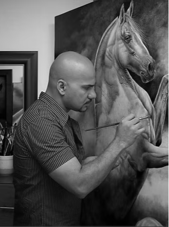 He was born in Barranquilla Atlántico, but grew up in Caucasia Antioquia, Colombia. His career in the plastic arts began from a very young age; upon entering high school, a teacher detected the talent of the young Musalán and encouraged him to participate in a painting competition, which had as its theme “The day of water”, where he obtained third place. From that moment he began to receive requests for drawings, and it led him to make billboards for many years.