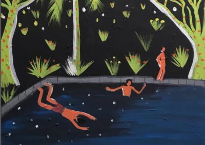 AMIGOS EN LA QUINTA Acrílico sobre madera. 50 x 70 cm
