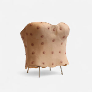 Corset de tetillas masculinas (Serie Peletería Humana, 1999) Silicona, calco del natura, tela 34 x 30 x 22 cm Reproducido en el catálogo del Museo Castagnino, Nicola Costantino, 2001.