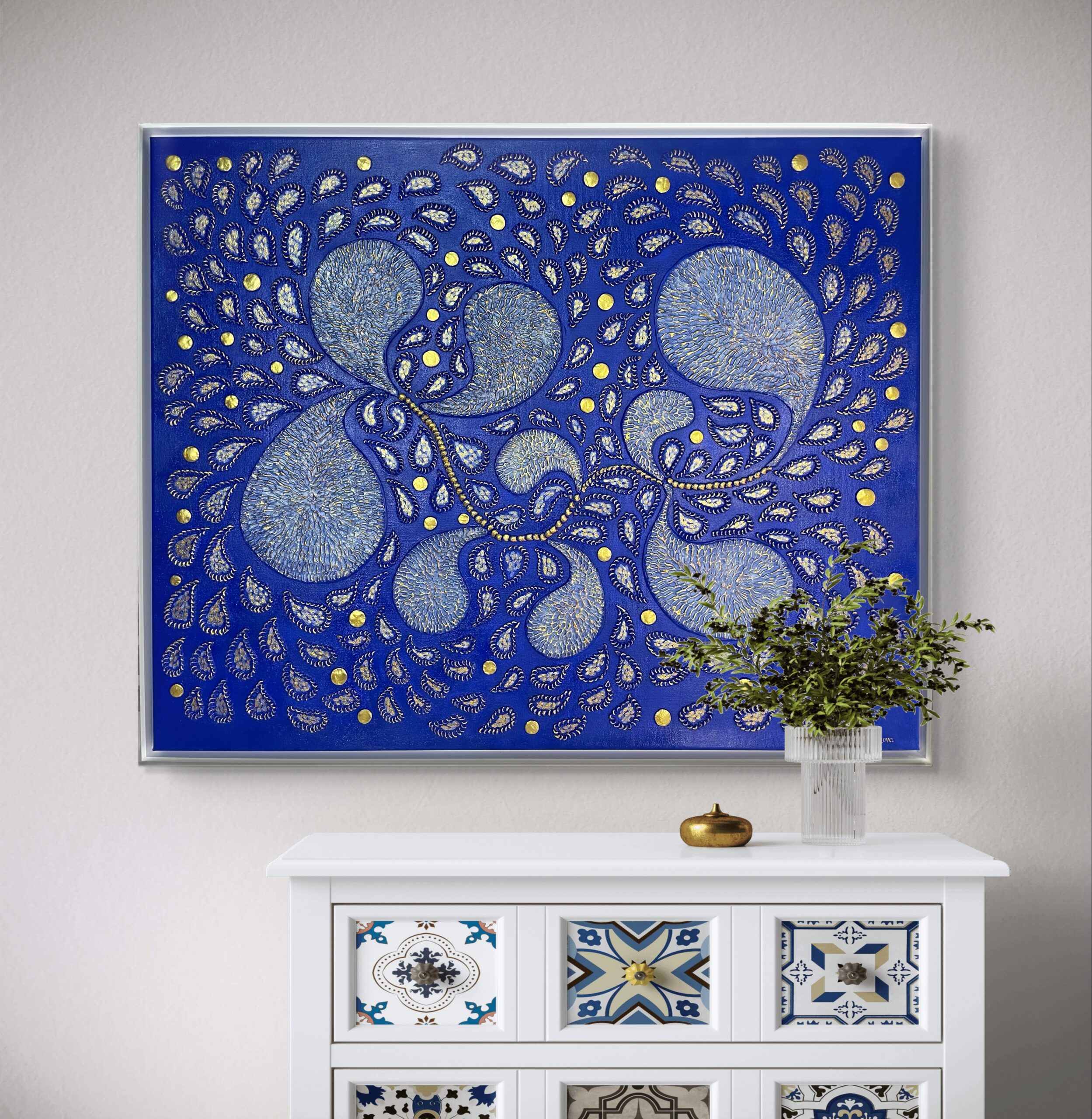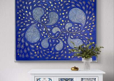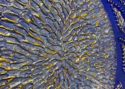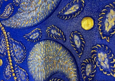 Materials Mixed media on canvas (textured paste, clay, acrylic paints)