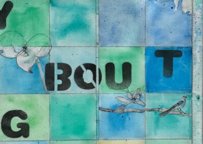 Materials Watercolor, upcycled wall paper & charcoal