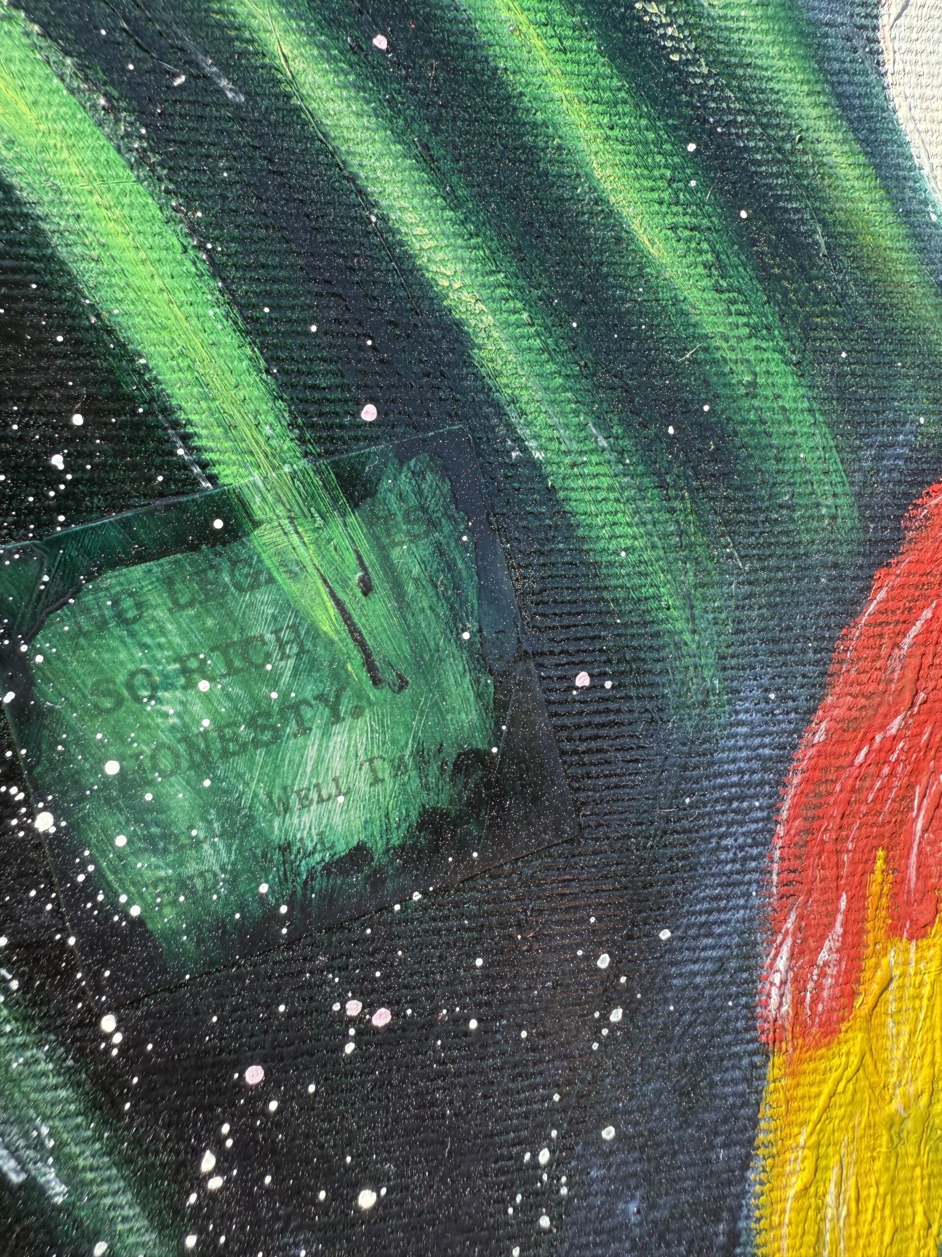 Materials                       Mixed Media (Inks, Spray paint, Collage, Modeling Paste, Acrylic) and Oil paint.