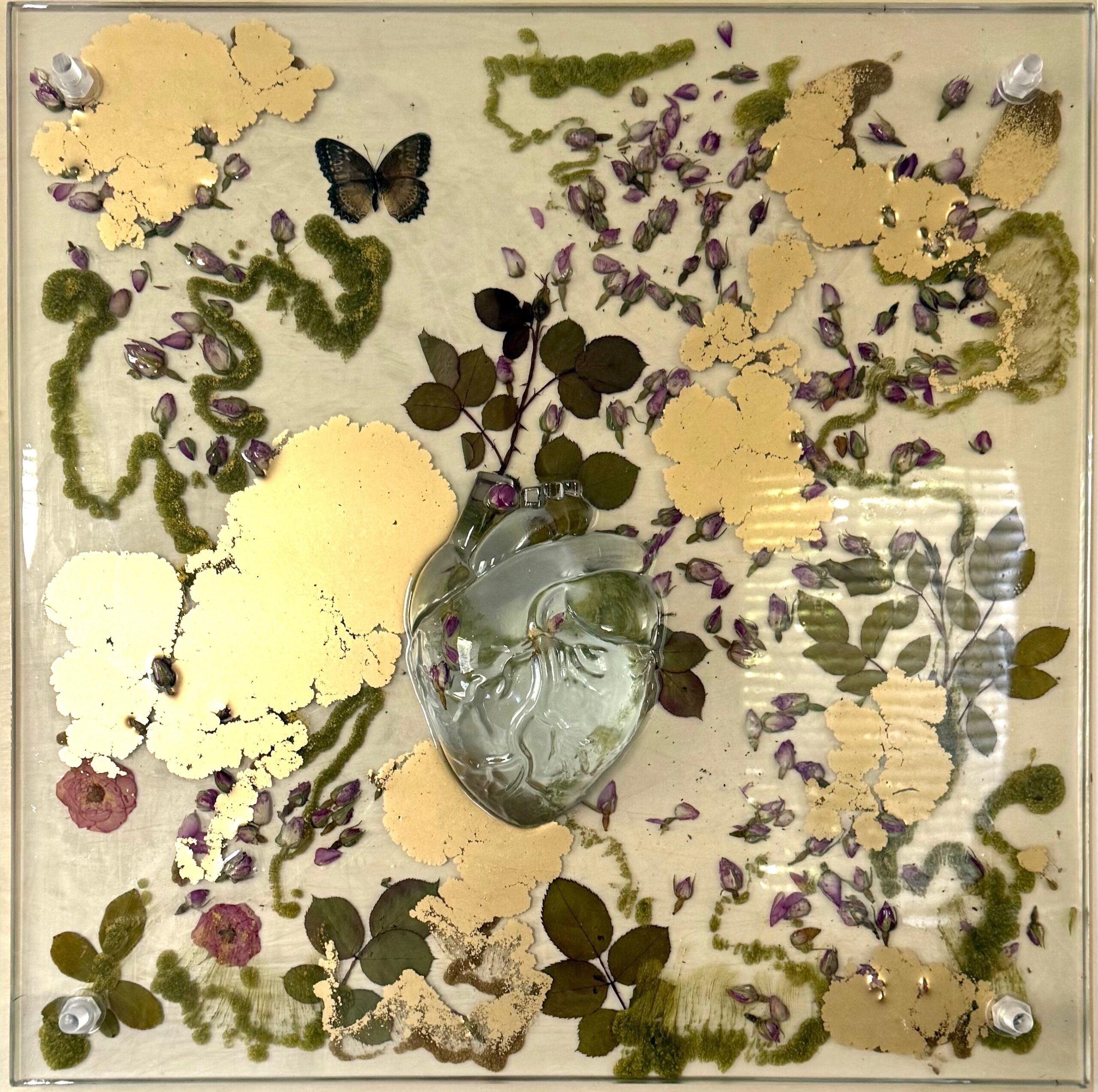 Epoxy resin, ink, roses, butterflies