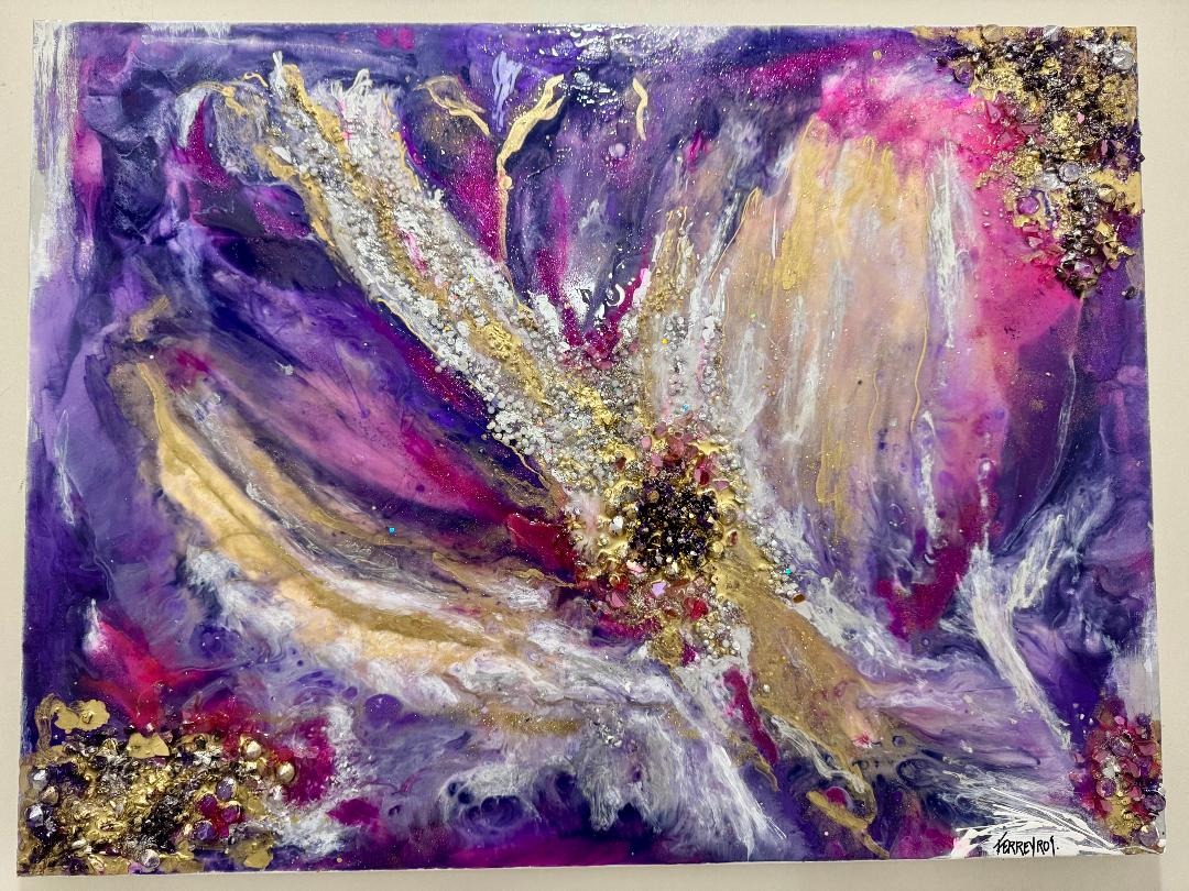 Materials Inks, pigments, resin, healing crystals, mirrors, glass and gold leaf.