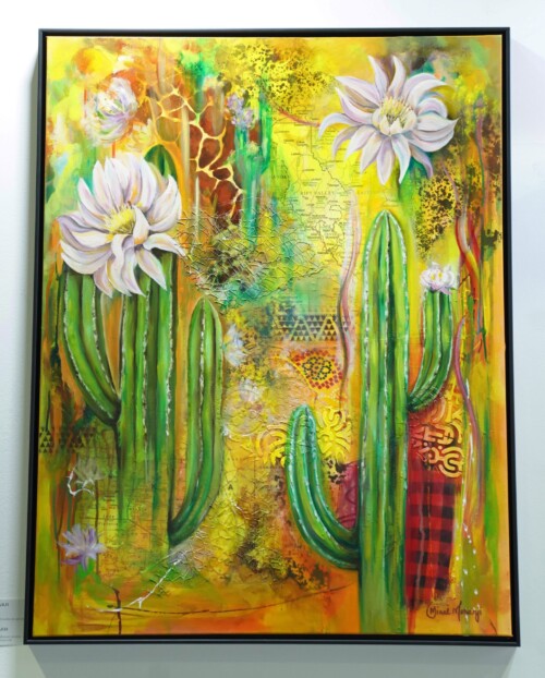 In her paintings, she explores and expresses the intricate layers of her identity, capturing the cultural intertwining of her dual heritage in a harmonious blend that creates a unique narrative. This fusion conveys a profound sense of belonging and connection to both cultures. Her paintings serve as windows into her life in Kenya, reflecting her journey as an Indian woman, mother, and daughter, embraced by the beauty of nature.