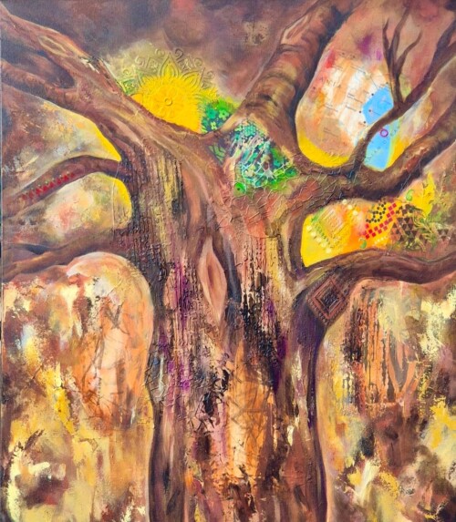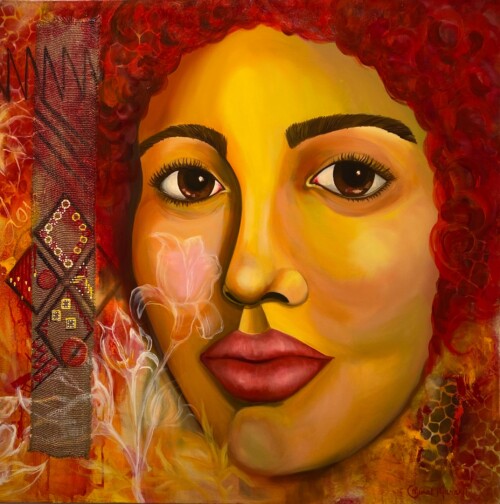 My mixed art work which combines oils and acrylics reflect my experiences and journeys surrounded by nature’s beauty. As a spiritual soul I’m influenced by nature, my heritage, and the circle of life. I express this using bold colours, layering, and textures.