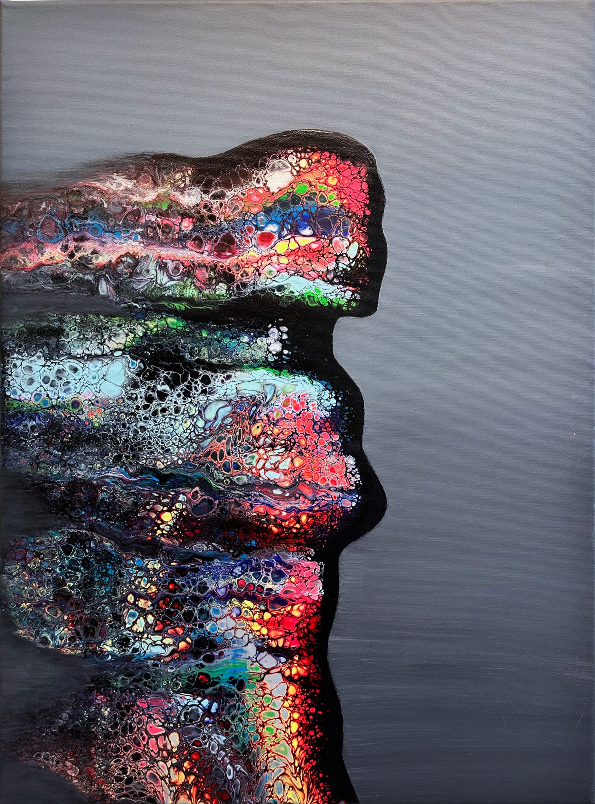 Materials Acrylics, pouring mediums on canvas