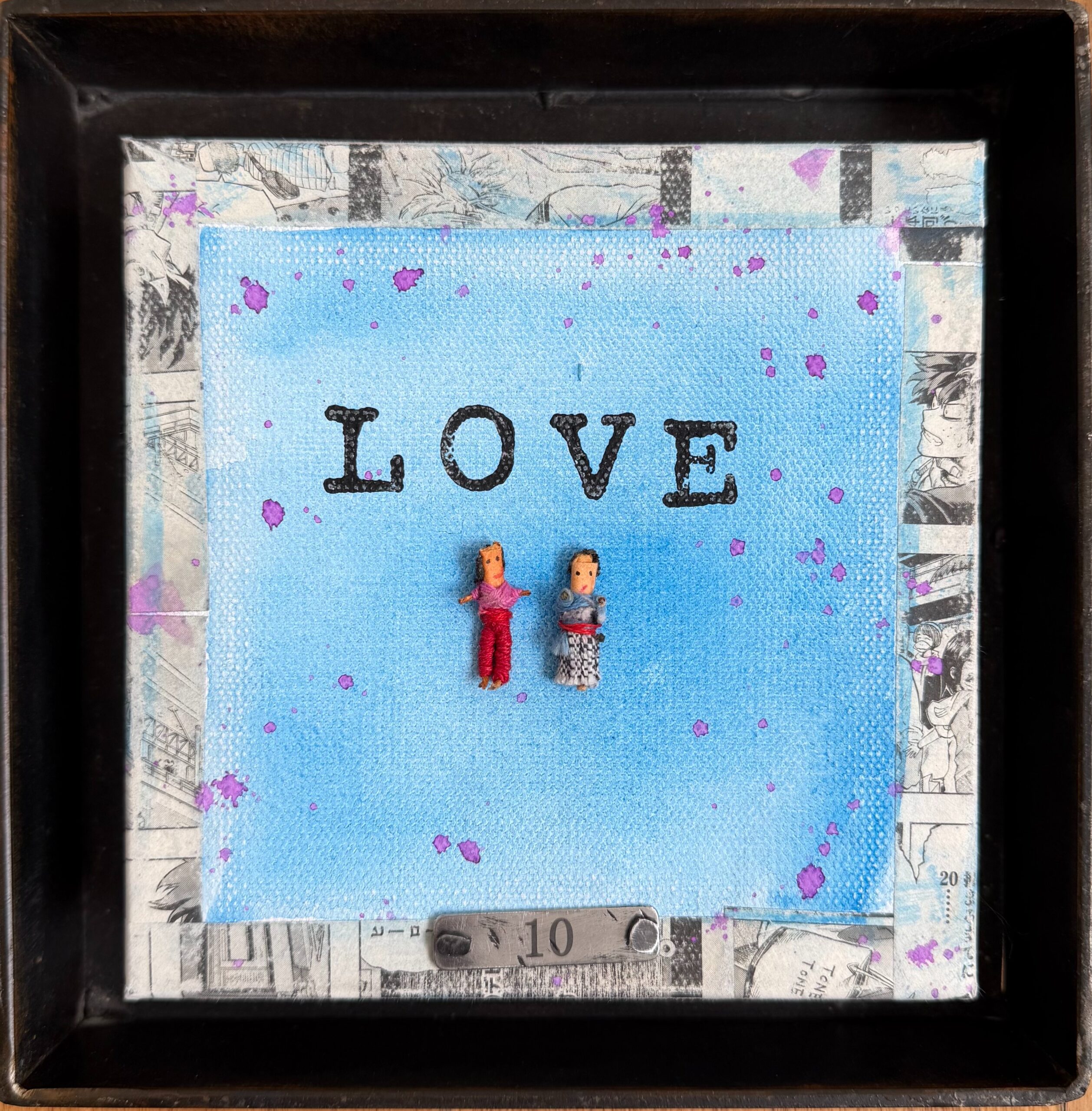 Materials Watercolor, vintage little embroidered and wood "tiny people" from Oaxaca, MX and metal
