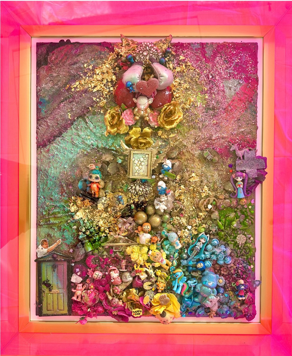 Materials Collected objects, acrylic, gold leaf
