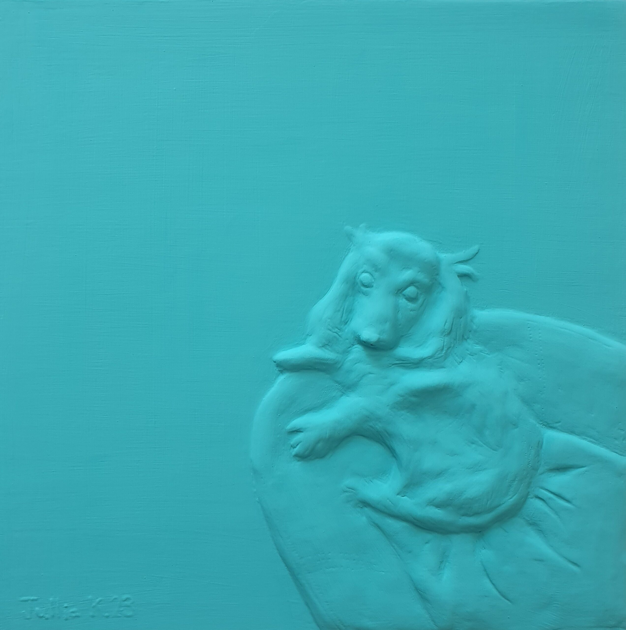Materials Air dry clay and Acrylic on wooden panel