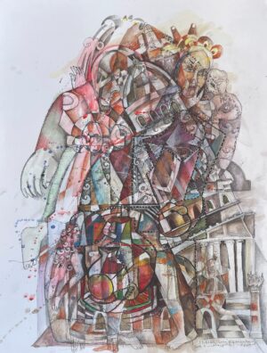 Galería Azur presents a proposal that showcases and interweaves two lines of the artist’s research. On the one hand, he focuses on a gaze that geometrizes architecture and freezes urban scenes, and on the other hand, the portrait operates as a discursive metaphor. Firstly, the desire for stability, balance, and strength is represented in the architecture, while the latter emerges as a joyful deviation from language that resonates with unexpected senses.