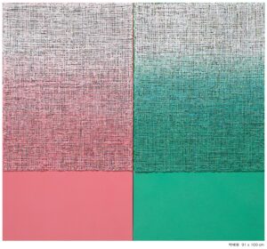 Aesthetically, this selection of works highlights the quality that color acquires. The interest in gradations, along with certain tonal saturation timbres, forms a general nuance where transparency and reflection play significant roles. Within the curatorial dialogue, color expands with a great deal of sensuality, whether by chance or control, but always elegant and seductive. Regarding the treatment of material, present in various languages, it moves “from the solid to the liquid,” from lightness to solidity. Surface effects deepen with actions that propose dual sensations. Thus, some paintings reflect versions of transparency, wear, or corrosion, while other pieces oscillate between bi and tridimensionality.