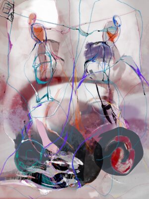 The paintings are structured in a chaotic way, the magic of dynamic abstraction and the almost geometric strokes stimulate the composition while the figures appear in the universal yearning to bring life to the vortex of its maximum intensity.