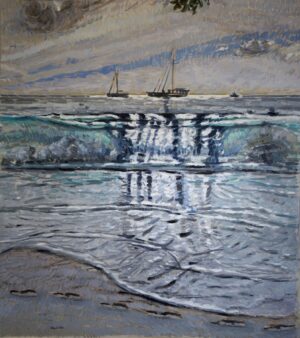 Aesthetically, this selection of works highlights the quality that color acquires. The interest in gradations, along with certain tonal saturation timbres, forms a general nuance where transparency and reflection play significant roles. Within the curatorial dialogue, color expands with a great deal of sensuality, whether by chance or control, but always elegant and seductive. Regarding the treatment of material, present in various languages, it moves “from the solid to the liquid,” from lightness to solidity. Surface effects deepen with actions that propose dual sensations. Thus, some paintings reflect versions of transparency, wear, or corrosion, while other pieces oscillate between bi and tridimensionality.